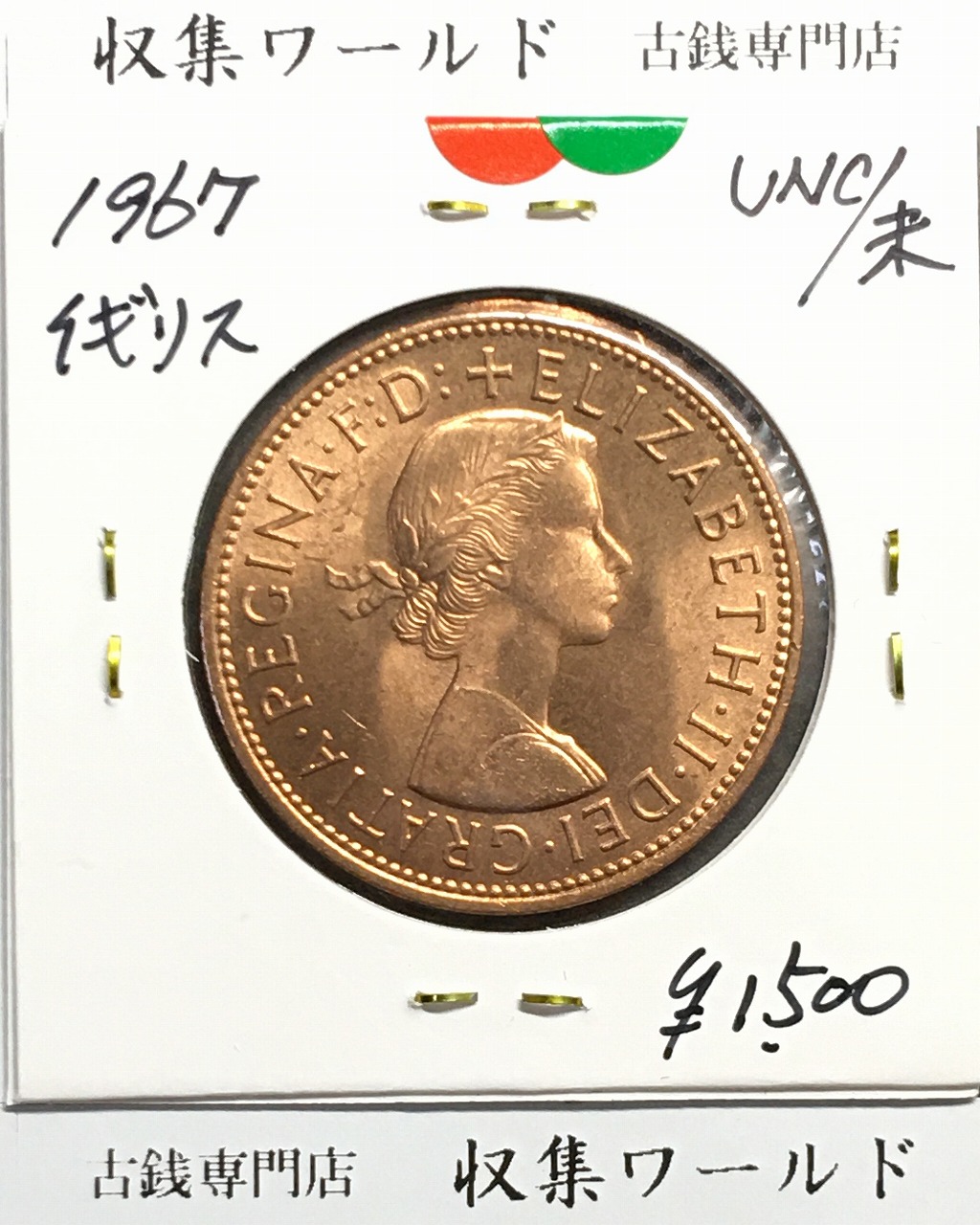 1ペニー青銅貨 神の恵み/エリザベス女王像 1967年銘/英国貨幣 未使用に関しての問合せは、下記より気軽にご連絡下さい。