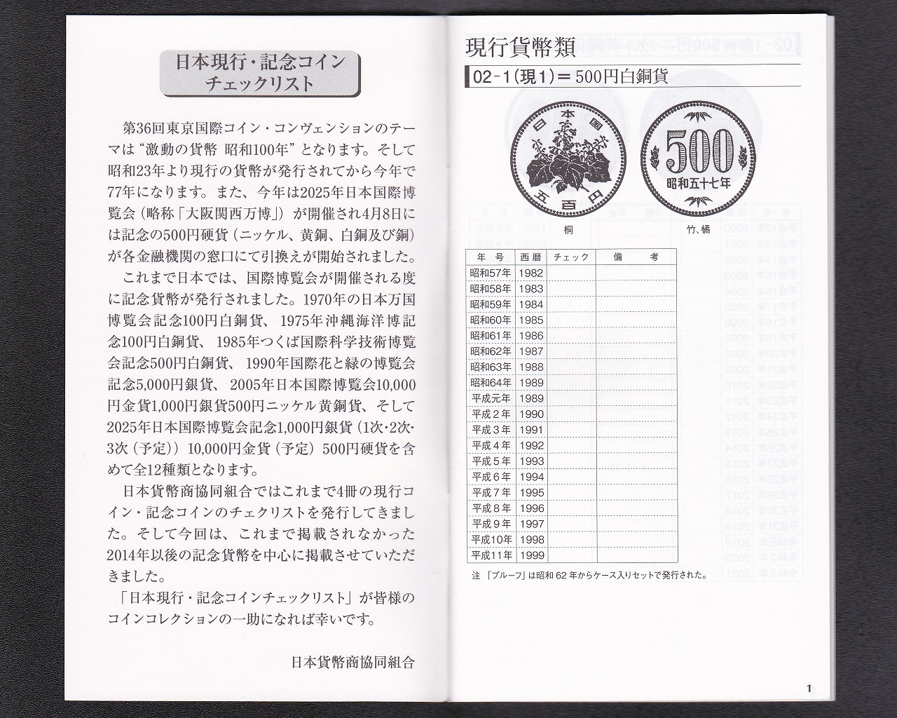 日本現行・記念コインチェックリスト 日本貨幣商協同組合発行 New2025刊行