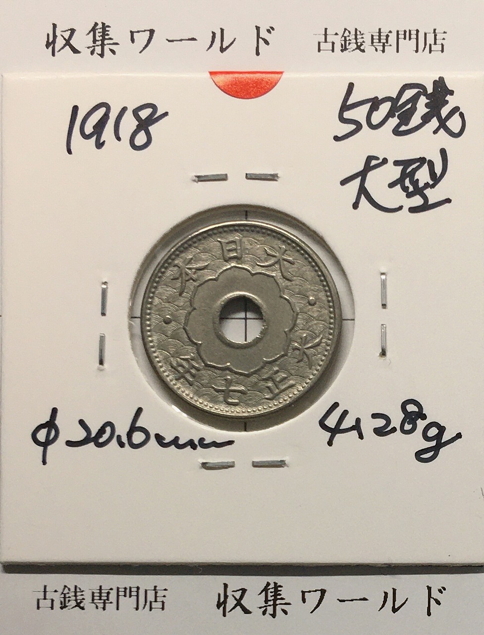大型 5銭白銅貨 大正7年(1918) 準特年 近代 直径 20.6mm 美品