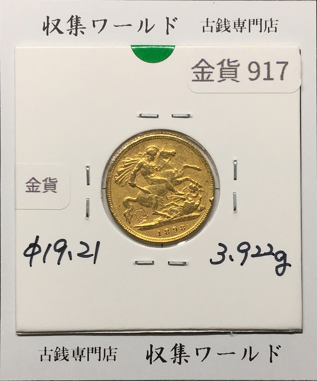 イギリス金貨 1898年 ヴィクトリア女王像/ヴェールヘッド/ハーフソブリン 流通美品