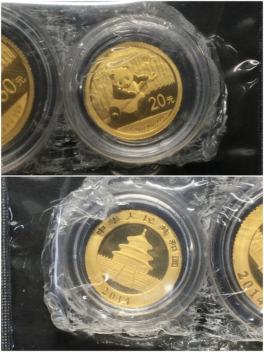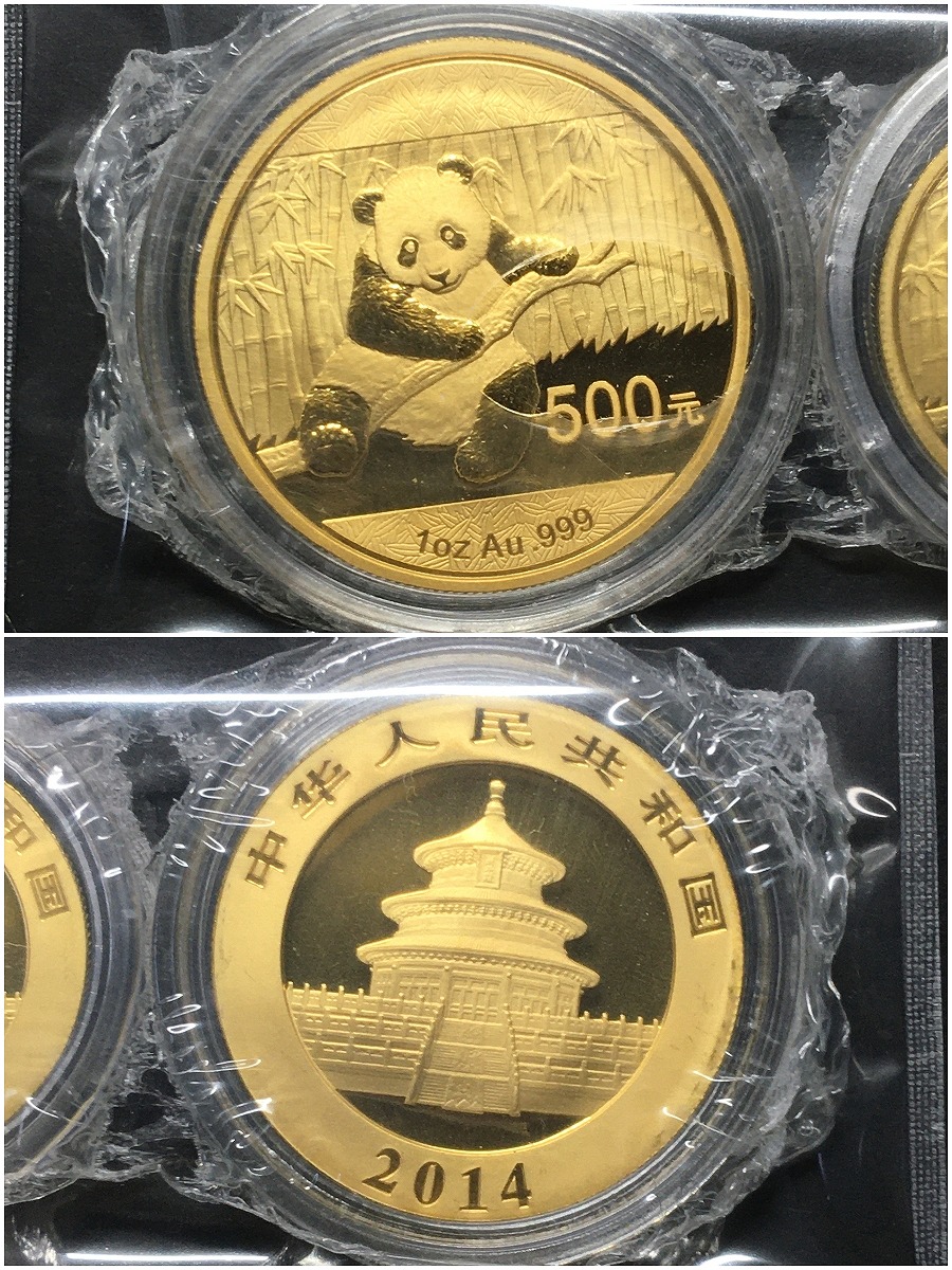 中国パンダ金貨 20元〜500元/5枚セット 2014年銘 純金999/PF仕様 カプセル入/未使用に関しての問合せは、下記より気軽にご連絡下さい。