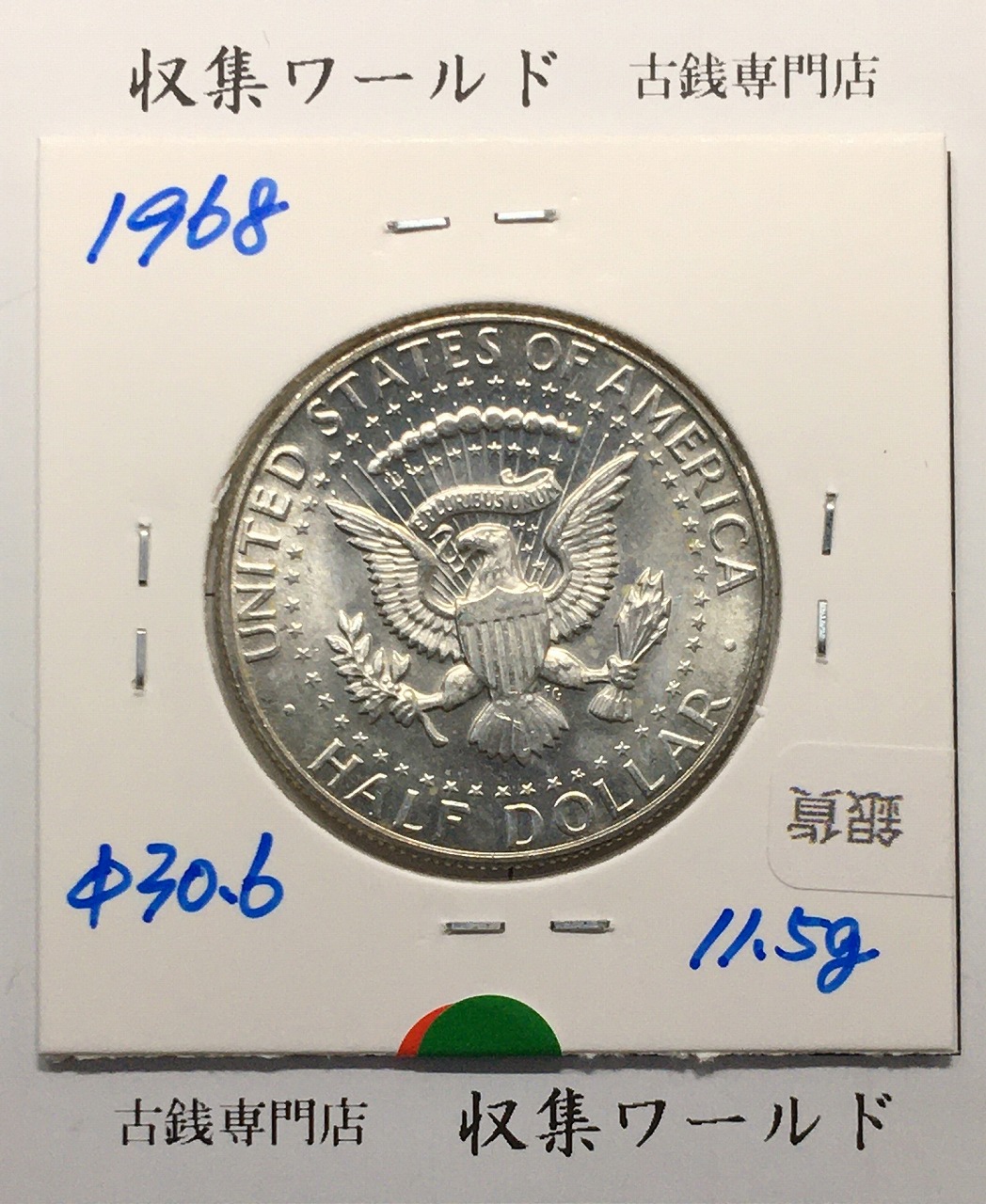 アメリカ銀貨 50セント銀貨 ケネディ大統領像 ハーフダラー 1968年銘 未使用に関しての問合せは、下記より気軽にご連絡下さい。