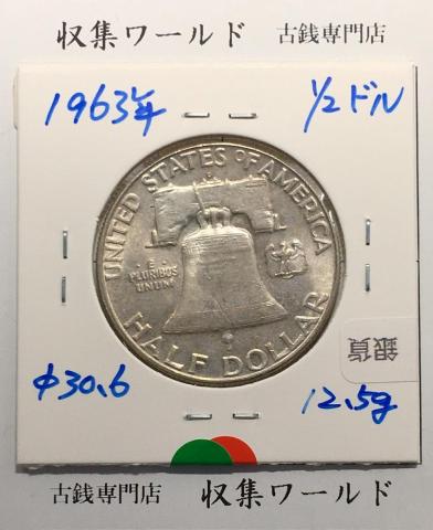 USA銀貨 50セント/1963年銘 ベンジャミン・フランクリン大統領 未使用