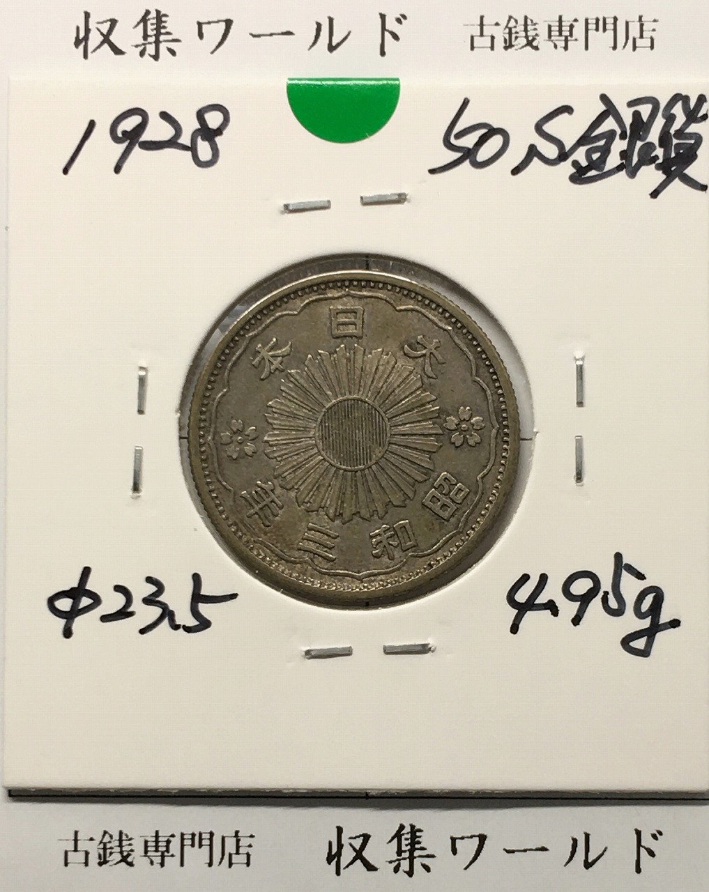 鳳凰 50銭銀貨 (1928年) 昭和3年 小型五十銭銀貨/量目 4.95g/美品-1493に関しての問合せは、下記より気軽にご連絡下さい。
