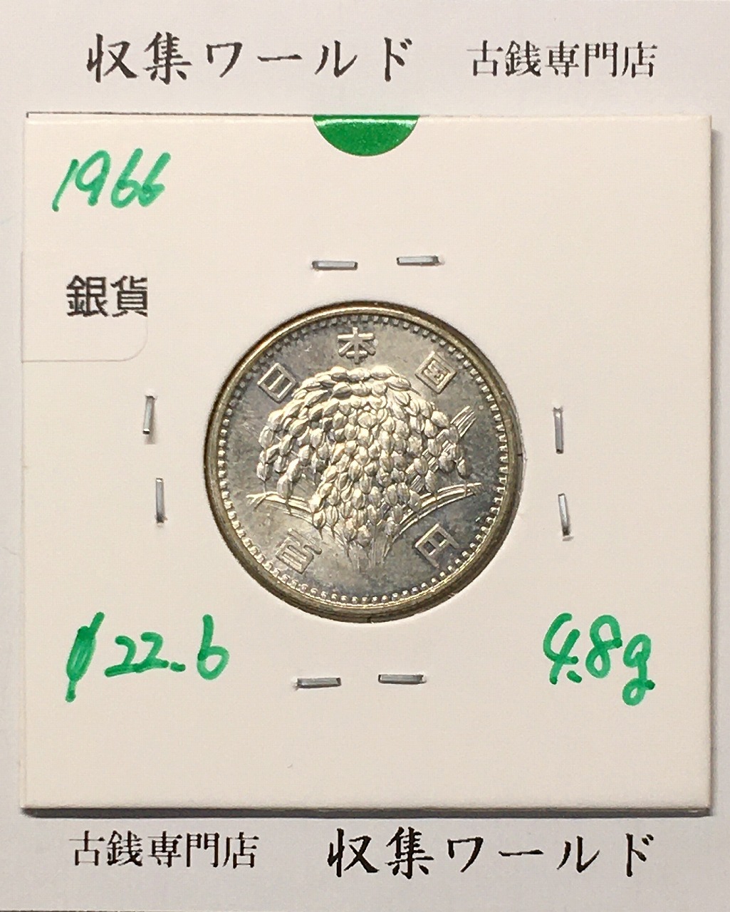 稲100円 銀貨 1966年(昭和41年銘) 現02-3 量目4.80g 極美品-1901に関しての問合せは、下記より気軽にご連絡下さい。
