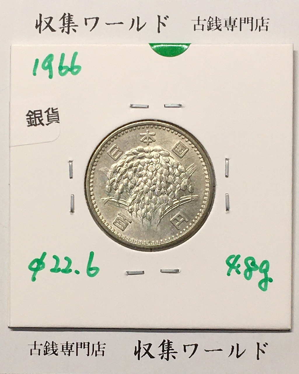 稲100円 銀貨 1966年(昭和41年銘) 現02-3 量目4.80g 極美品-1905に関しての問合せは、下記より気軽にご連絡下さい。