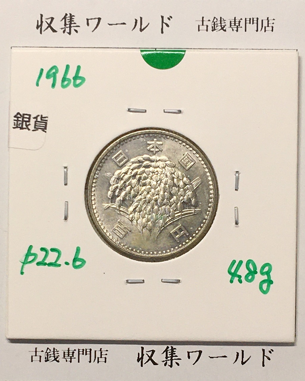 稲100円 銀貨 1966年(昭和41年銘) 現02-3 量目4.80g 極美品-1911に関しての問合せは、下記より気軽にご連絡下さい。