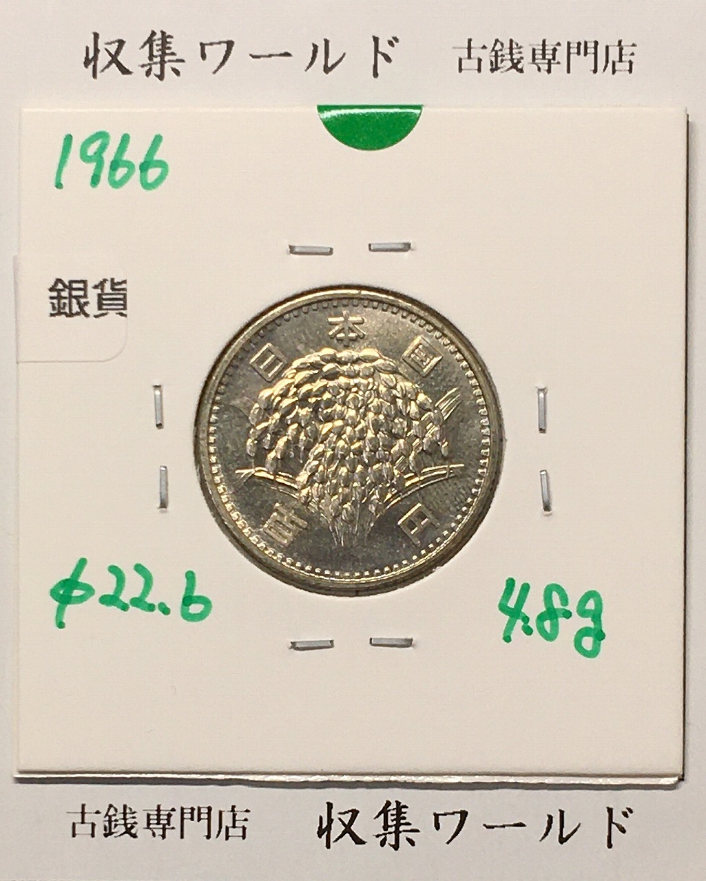 稲100円 銀貨 1966年(昭和41年銘) 現02-3 量目4.80g 極美品-1921に関しての問合せは、下記より気軽にご連絡下さい。