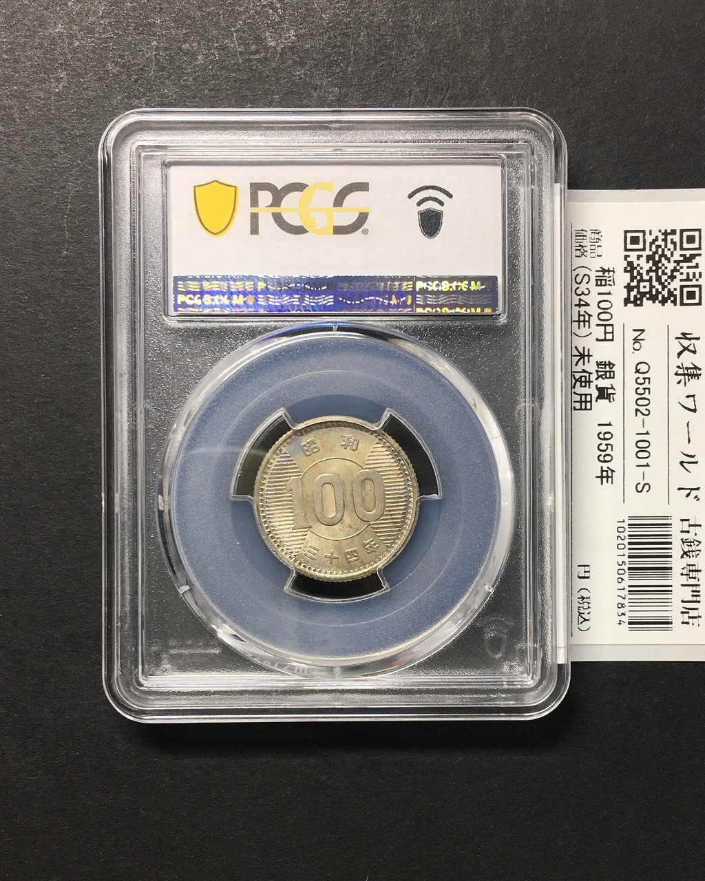 稲100円 銀貨 1959年(昭和34年銘) 量目4.80g 鑑定品 PCGS-MS64に関しての問合せは、下記より気軽にご連絡下さい。