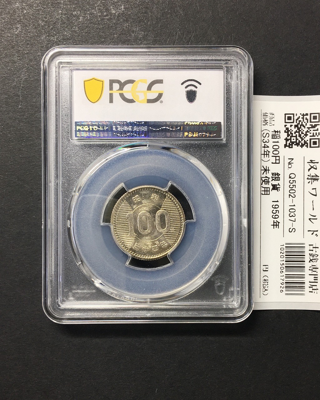 稲100円 銀貨 1959年(昭和34年銘) 量目4.80g 鑑定品 PCGS-MS62