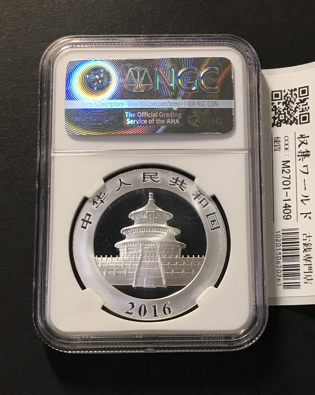 中国人民銀行 10元パンダ銀貨 2016年銘 30g純銀 NGC-MS70 鑑定品-1409に関しての問合せは、下記より気軽にご連絡下さい。