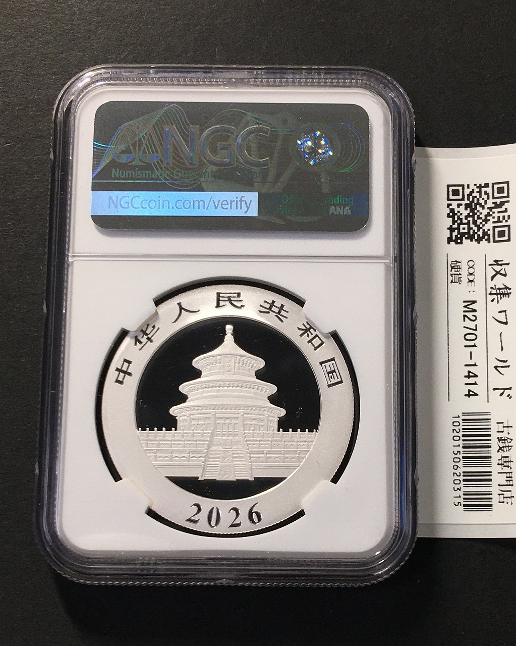 中国人民銀行 10元パンダ銀貨 2026年銘 30g純銀 NGC-MS70 鑑定品-1414に関しての問合せは、下記より気軽にご連絡下さい。