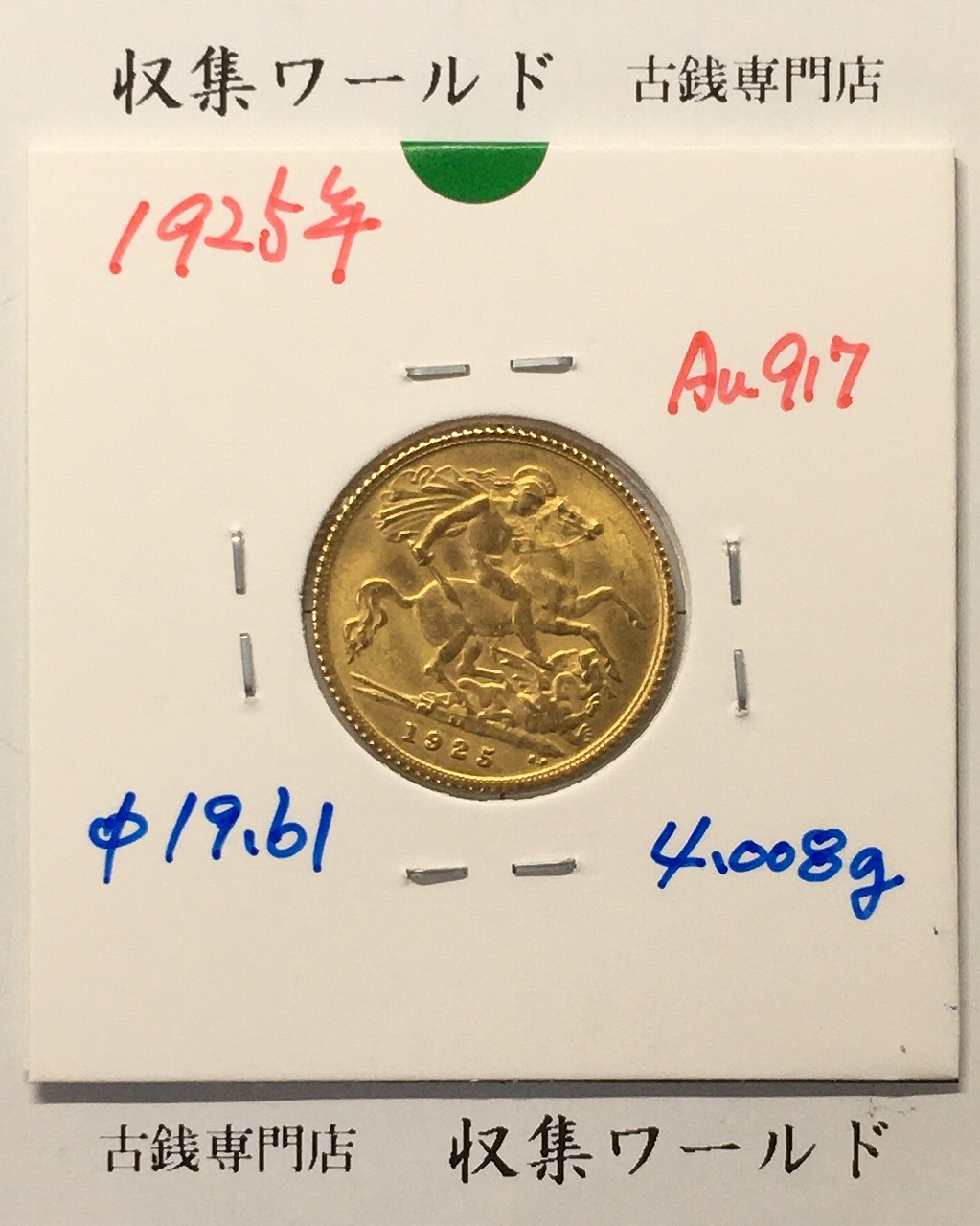 英国 ソプリン金貨 ジョージ5世/ロンドン王立造幣局 1925年銘 量目4.008g/ 美品に関しての問合せは、下記より気軽にご連絡下さい。