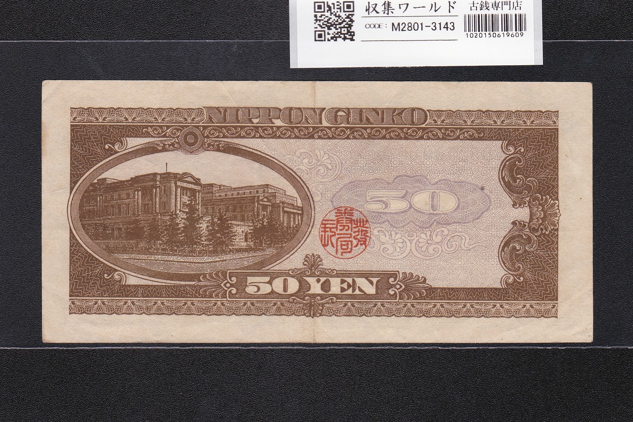 高橋是清 50円札 1951年銘 日本銀行券B号 前期 1桁 K052500J 美品に関しての問合せは、下記より気軽にご連絡下さい。