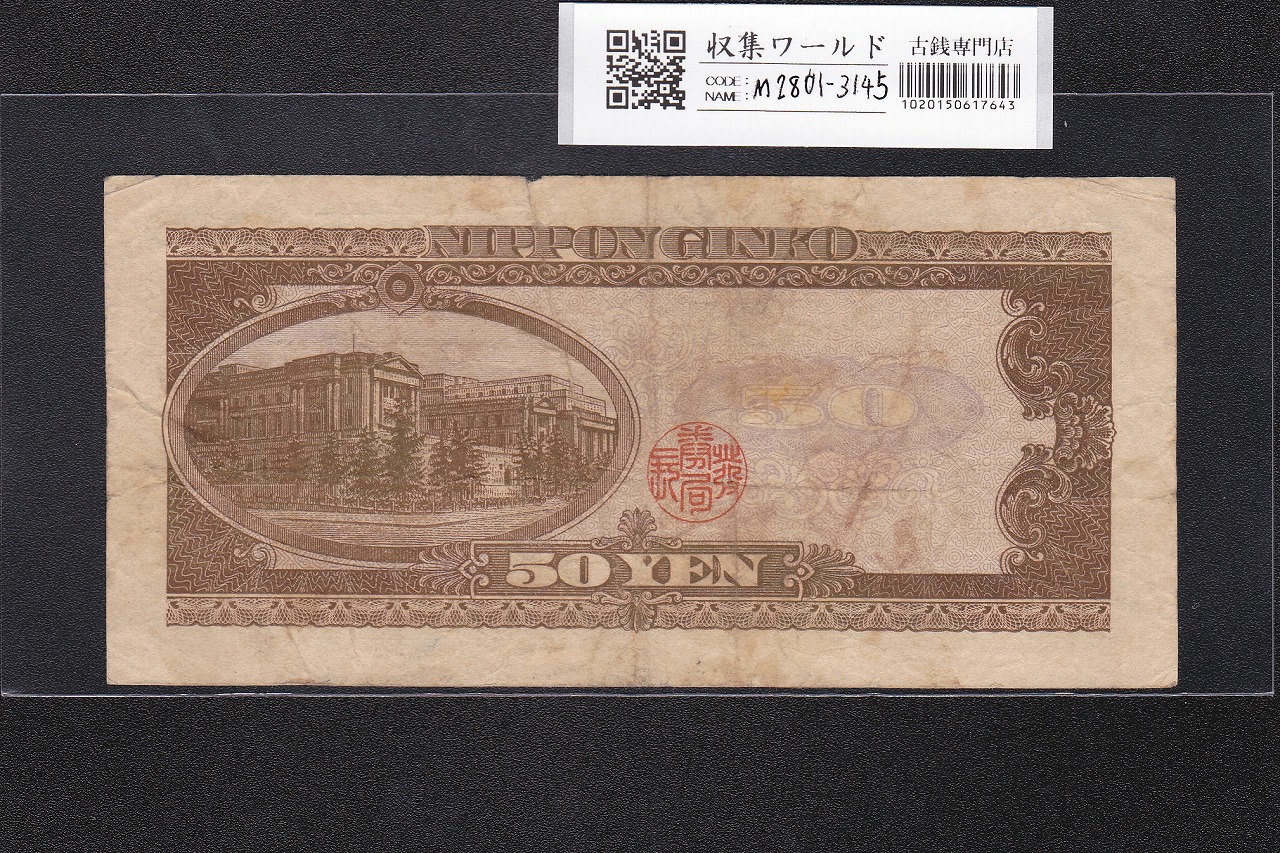 高橋是清 50円札 1951年銘 日本銀行券B号 前期 1桁 Q161619Q 美品に関しての問合せは、下記より気軽にご連絡下さい。