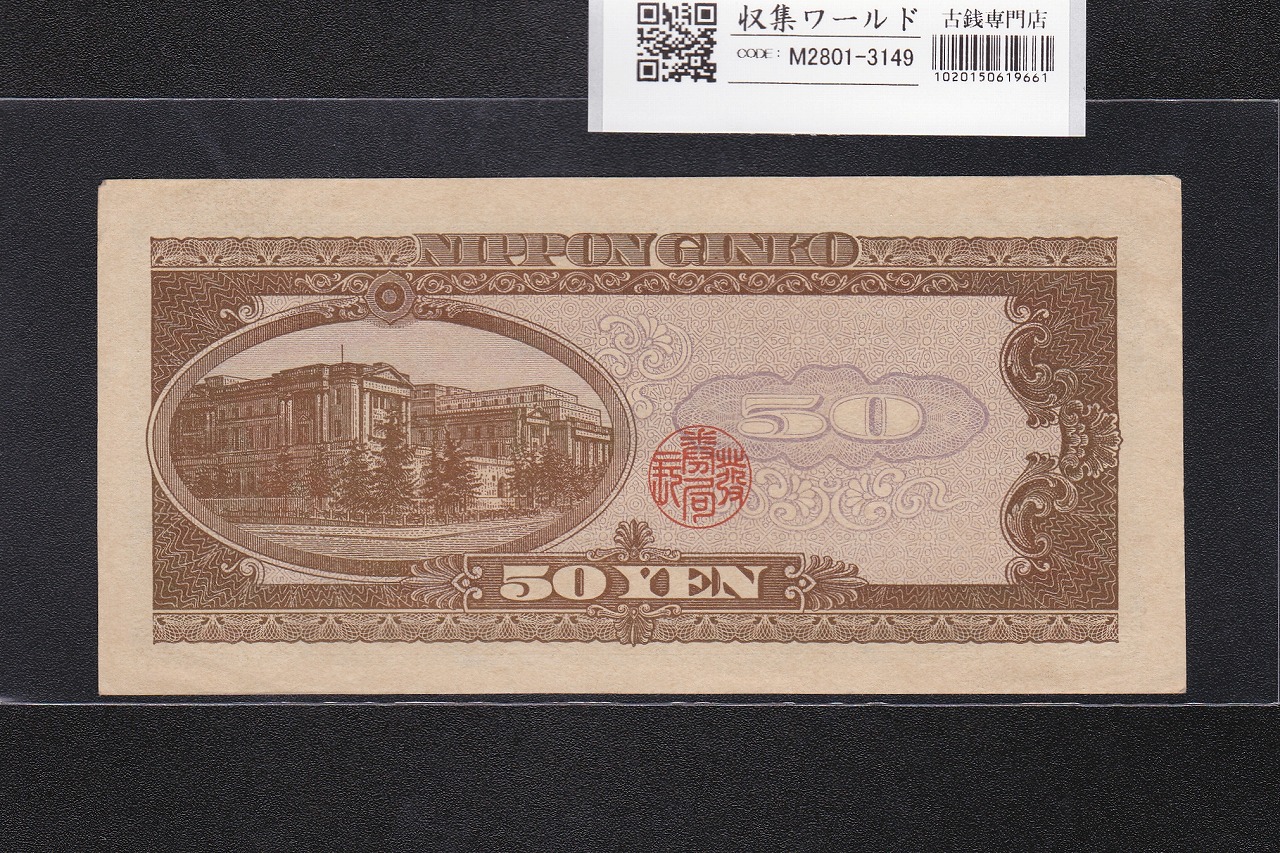 高橋是清 50円札 1951年銘 日本銀行券B号 前期 1桁 W800462Q 準未品