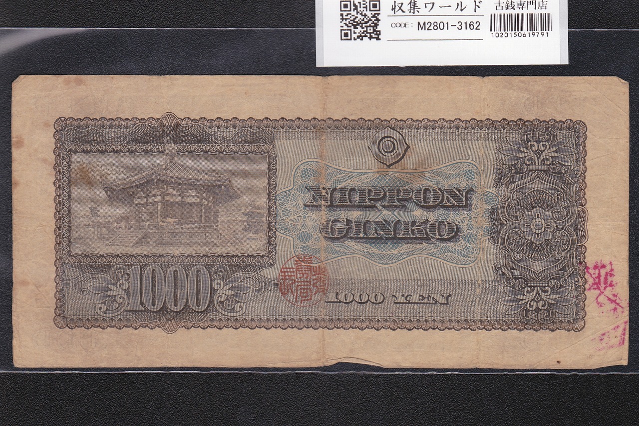聖徳太子 1000円紙幣 (昭和25年)1950年銘 後期 2桁 XC721248C 美品に関しての問合せは、下記より気軽にご連絡下さい。